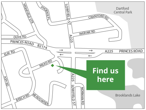 Mead Vets is located at the corner of Mead Road and Princes Road. It is on the Crayford side of the Lowfield and Princes Road’s intersection, at the entry to the Tree estate.